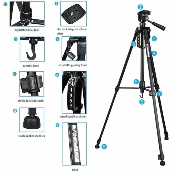 - ارتفاع قابل للتعديل: يمكنك ضبط ارتفاع الحامل حسب احتياجات التصوير.