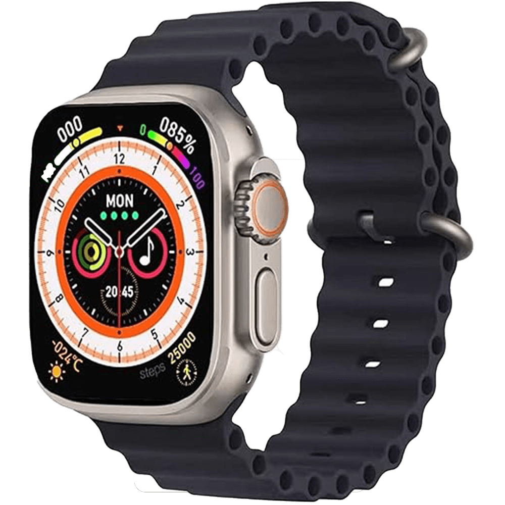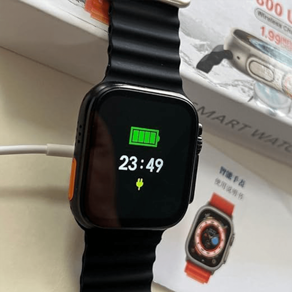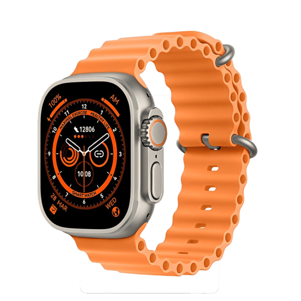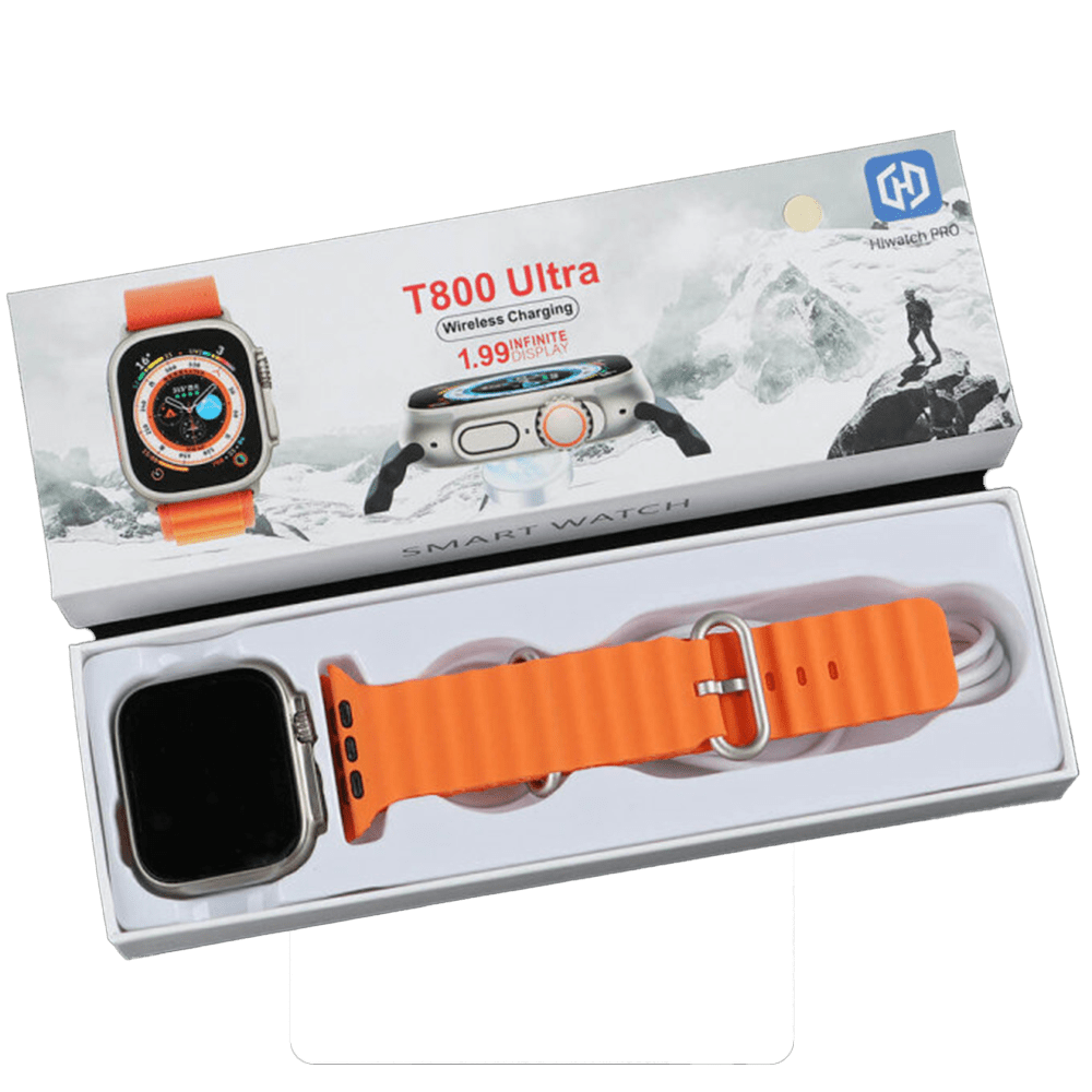 ساعة ذكية الترا سيريس 8 T800 بالألوان الجريئة الأسود والبرتقالي تجمع بين الأناقة والأداء. مع شاشة HD وميزات متقدمة لمراقبة الصحة وتقنية البلوتوث السريعة، توفر لك هذه الساعة تجربة ذكية استثنائية. استمتع بالراحة والأناقة في وقت واحد.