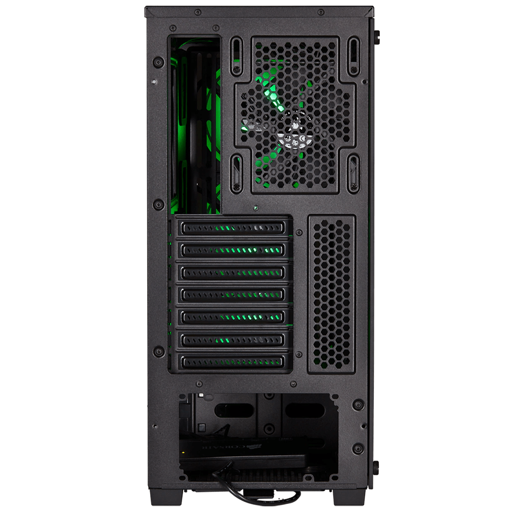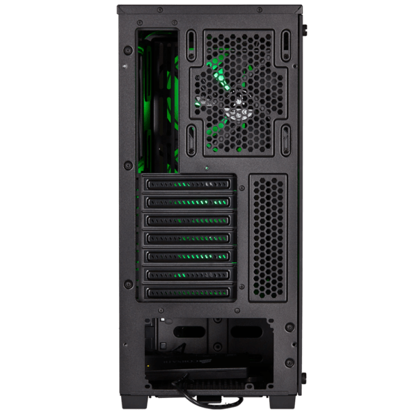 توفر الكيسه المساحة الكافية لتجميع مكونات الكمبيوتر بسهولة، مع فتحات تهوية استراتيجية لتحسين تدفق الهواء وتبريد النظام. يتميز بلوحة جانبية مصنوعة من الزجاج المقسى لعرض رائع للمكونات الداخلية.